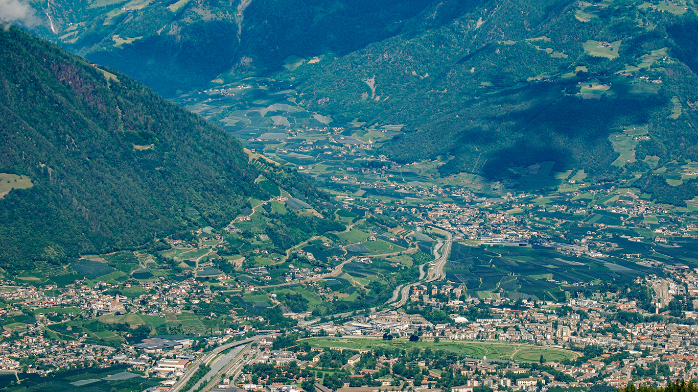 Eine schöne Wanderung geht vom Dorf Vöran aus zum Knottnkino auf 1465 m. Nach ca. 2 Stunden, 6,6 km und 209 Höhenmetern erlebt man ein echtes Kinospektakel. Der Blick aus den Kinostühlen, in und über das Meraner Talbecken, ist unglaublich. Bei schönem Wetter und mit etwas Wolken muss man dort hin.