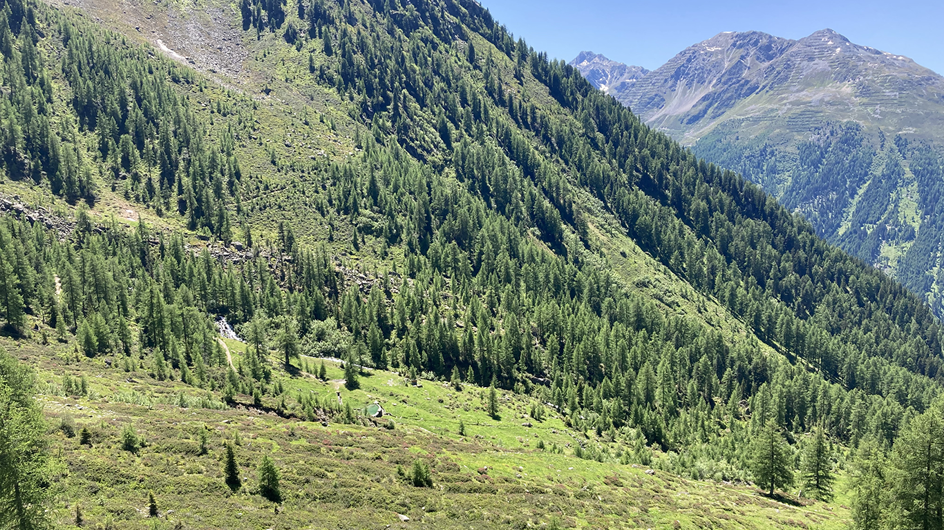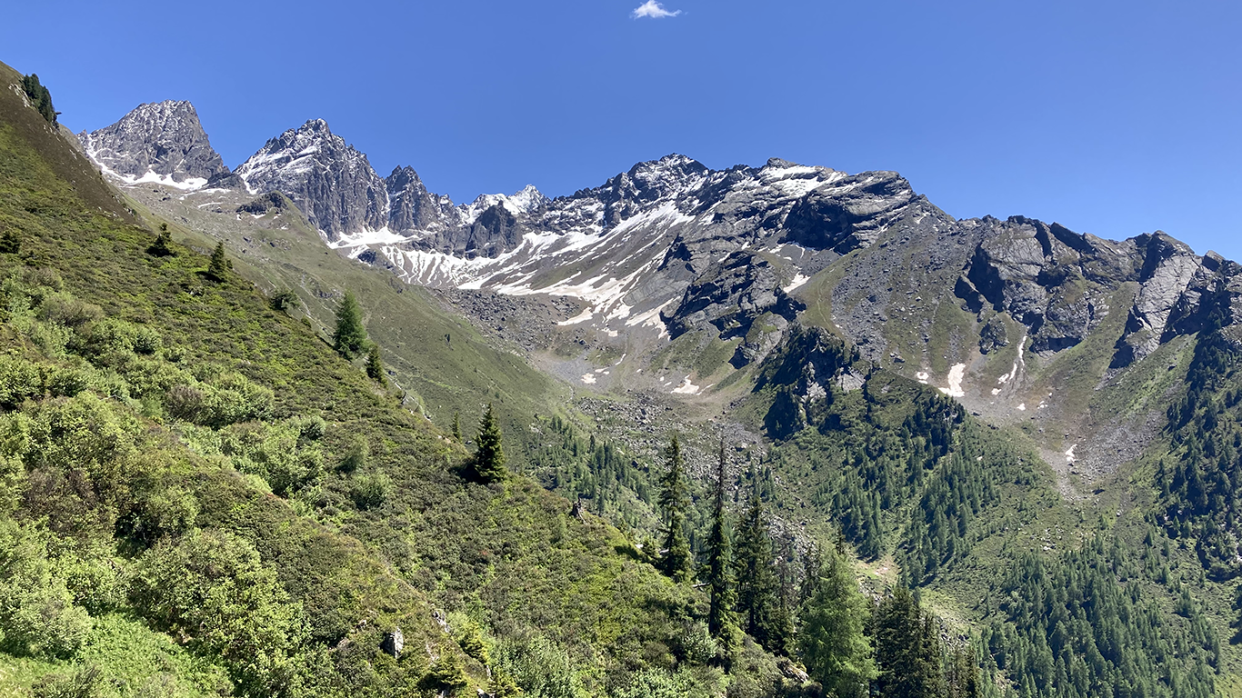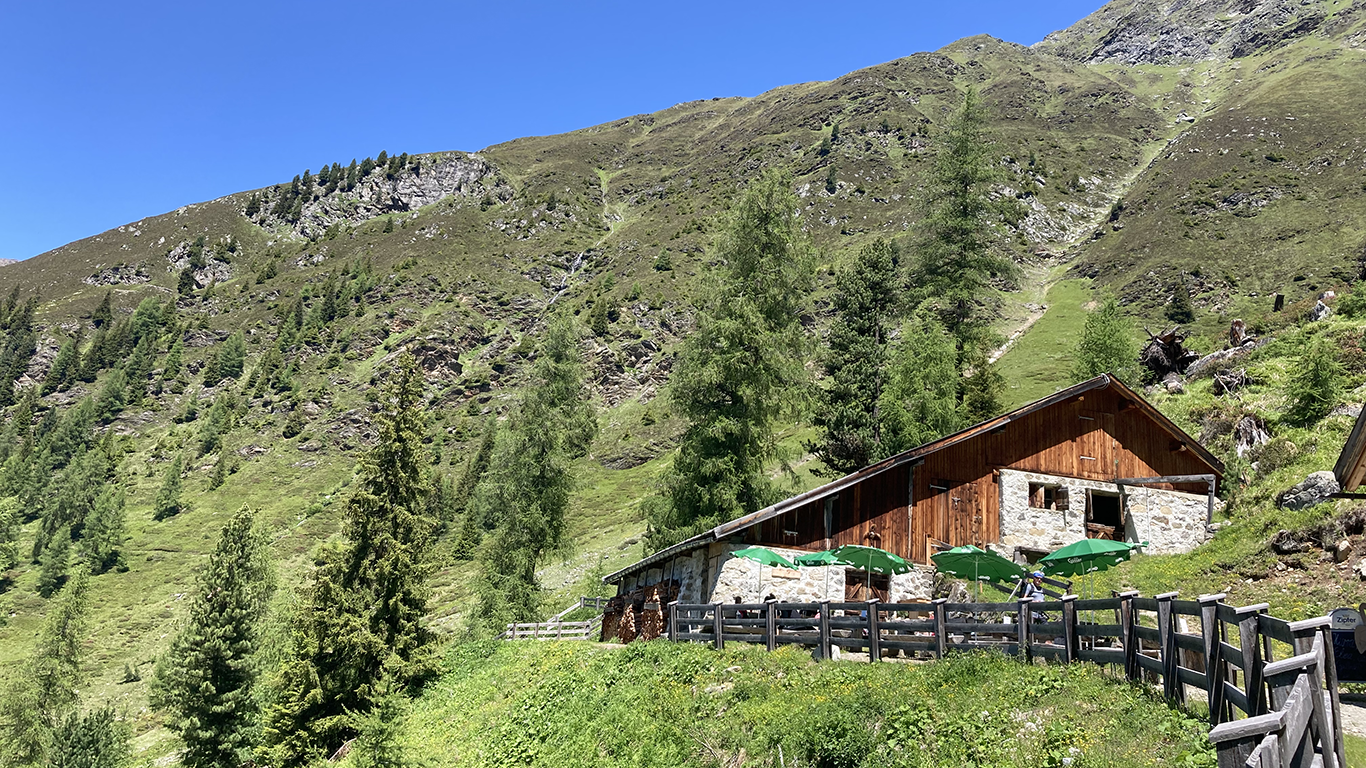 Ausgangspunkt unserer heutigen Wanderung ist die Falkaunsalm auf 1962 m, die direkt am Dr. Angerer-Panoramaweg liegt. Die Alm ist sehr gepflegt, es gibt hauseigenen Käse und Milchprodukte. Die Alm ist auch mit dem PKW zu erreichen.