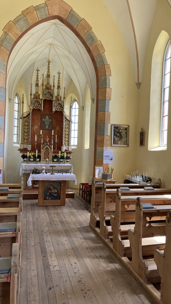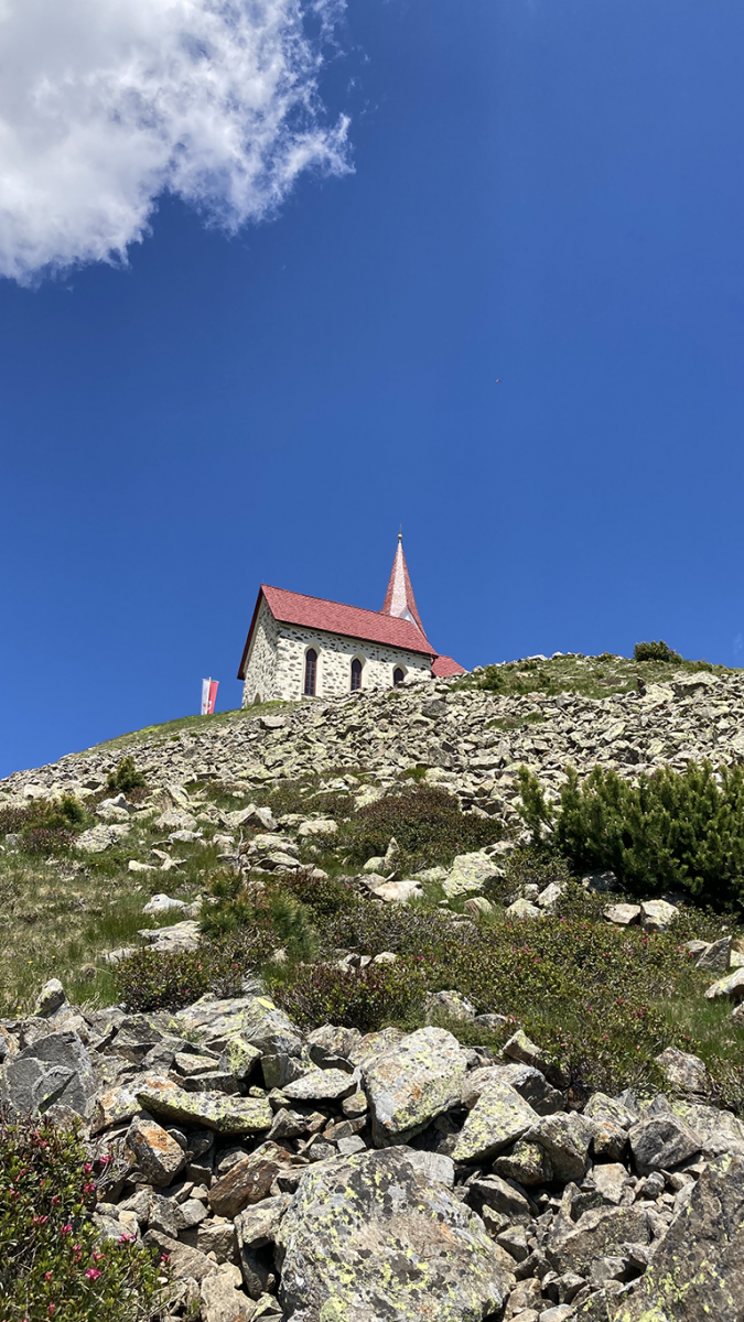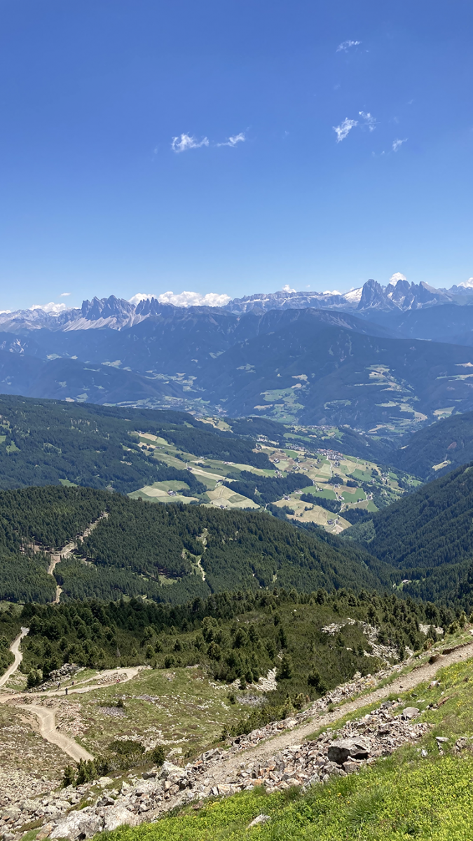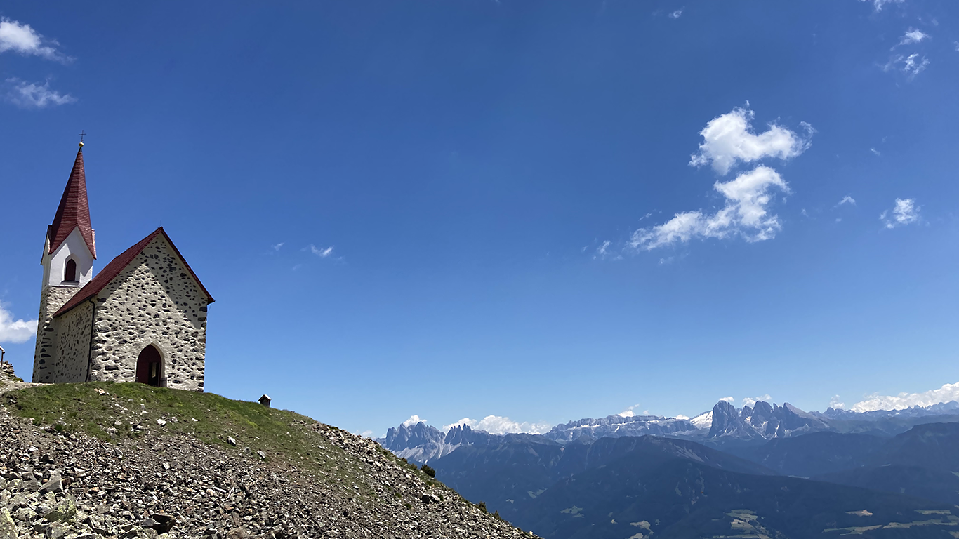 Wir beginnen die Tour beim Parkplatz vom Kühhof, oberhalb von Latzfons. Die erste Etappe führt uns auf guten Waldwegen bis zur bewirtschafteten Klausener Hütte. Von hier hat man schon einen tollen Ausblick auf die Dolomiten und das Grödnertal. Nach einer kleinen Erfrischung an der Klausener Hütte wird der Weg nun etwas steiler. Da man das Ziel, die Wallfahrtskirche Latzfonser Kreuz, nun ständig vor Augen hat aber gefühlt nie näher kommt, fragt man sich zwangsläufig – WARUM MUSS ICH HIER HOCH?